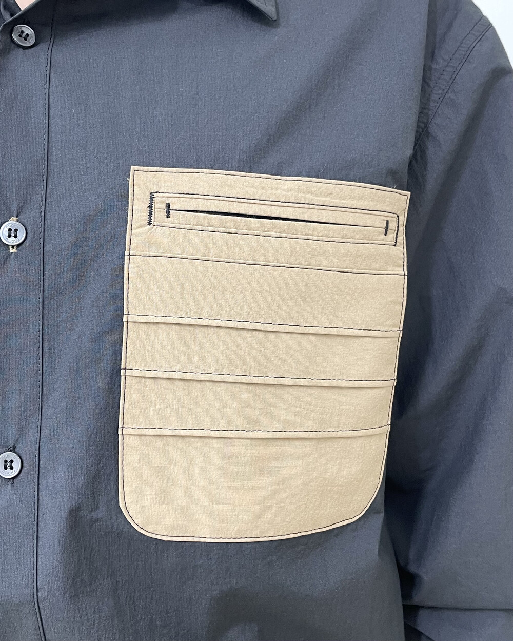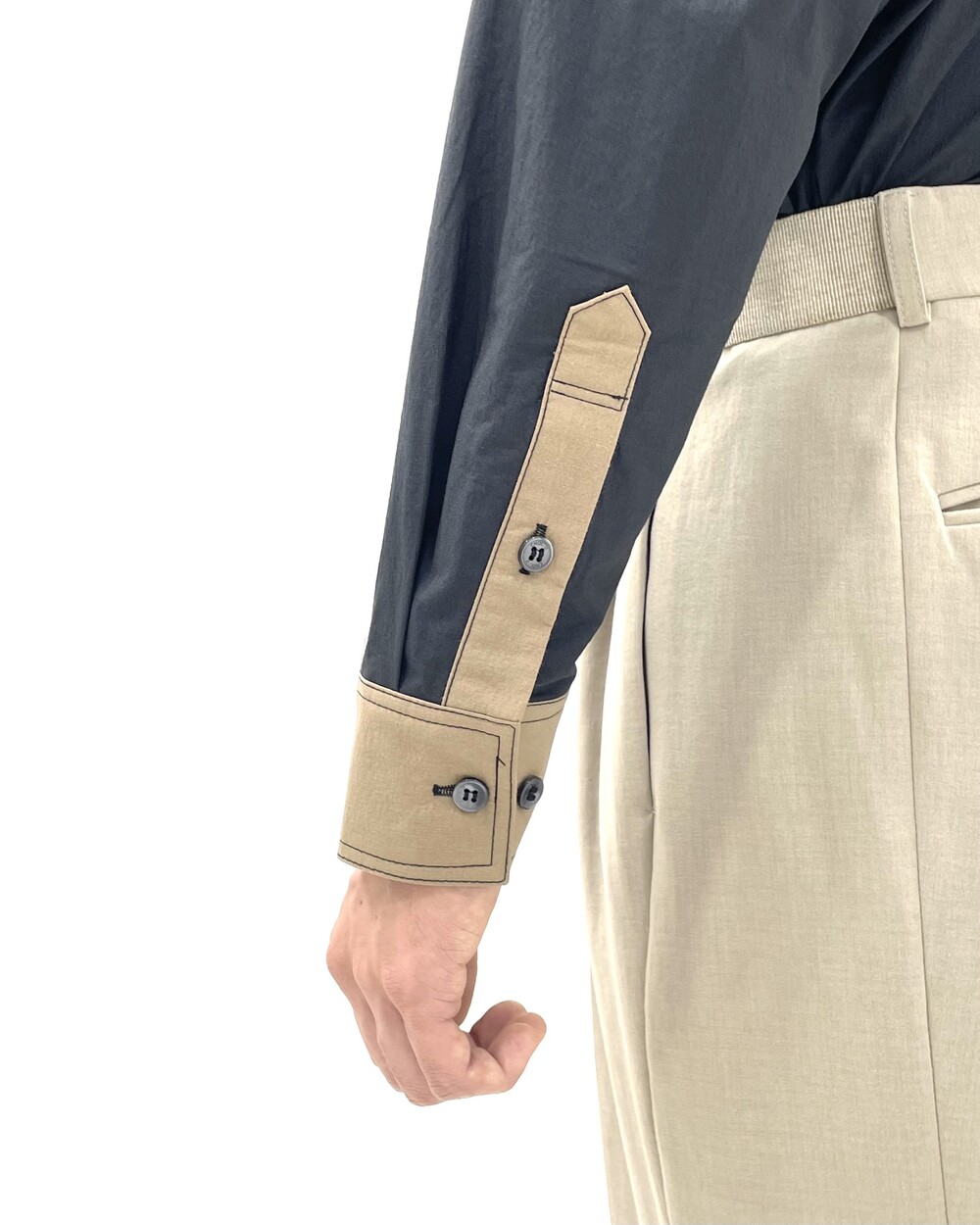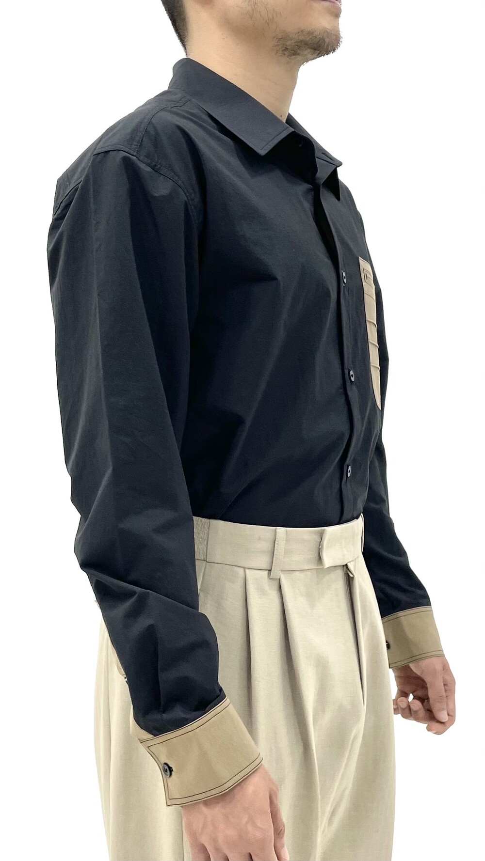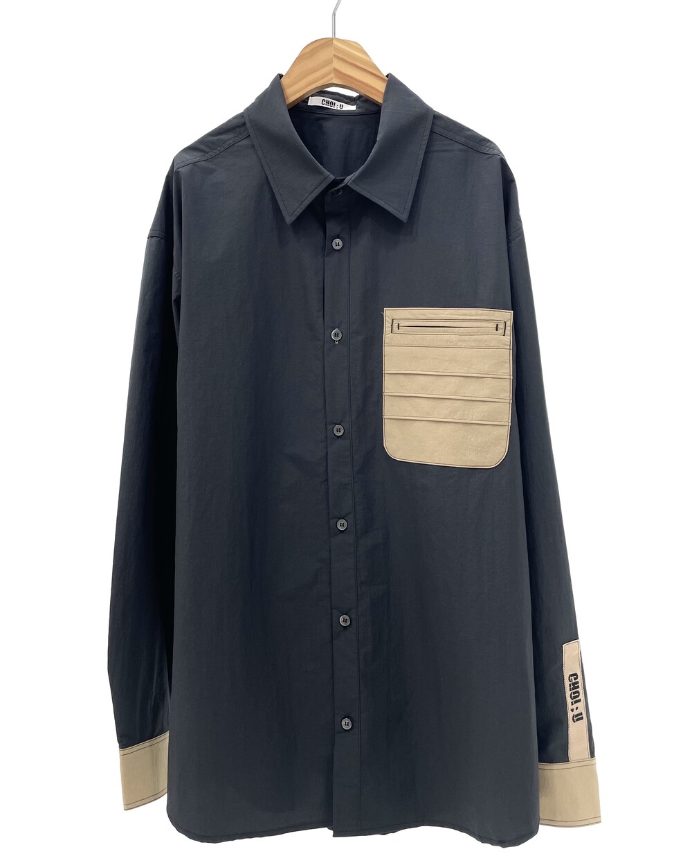 베이직한 핏에 배색 포인트를 준 셔츠입니다.