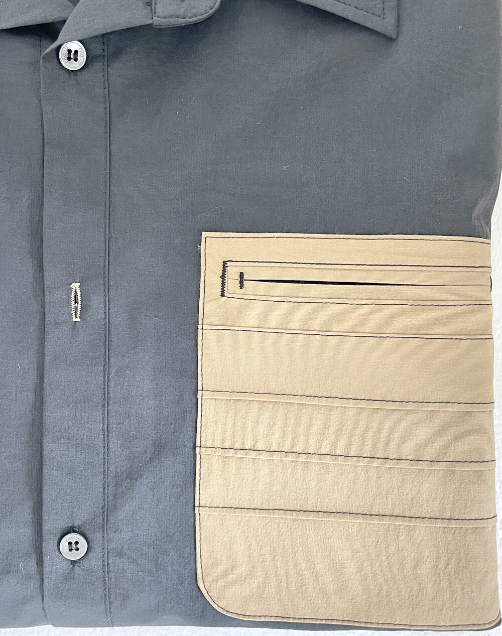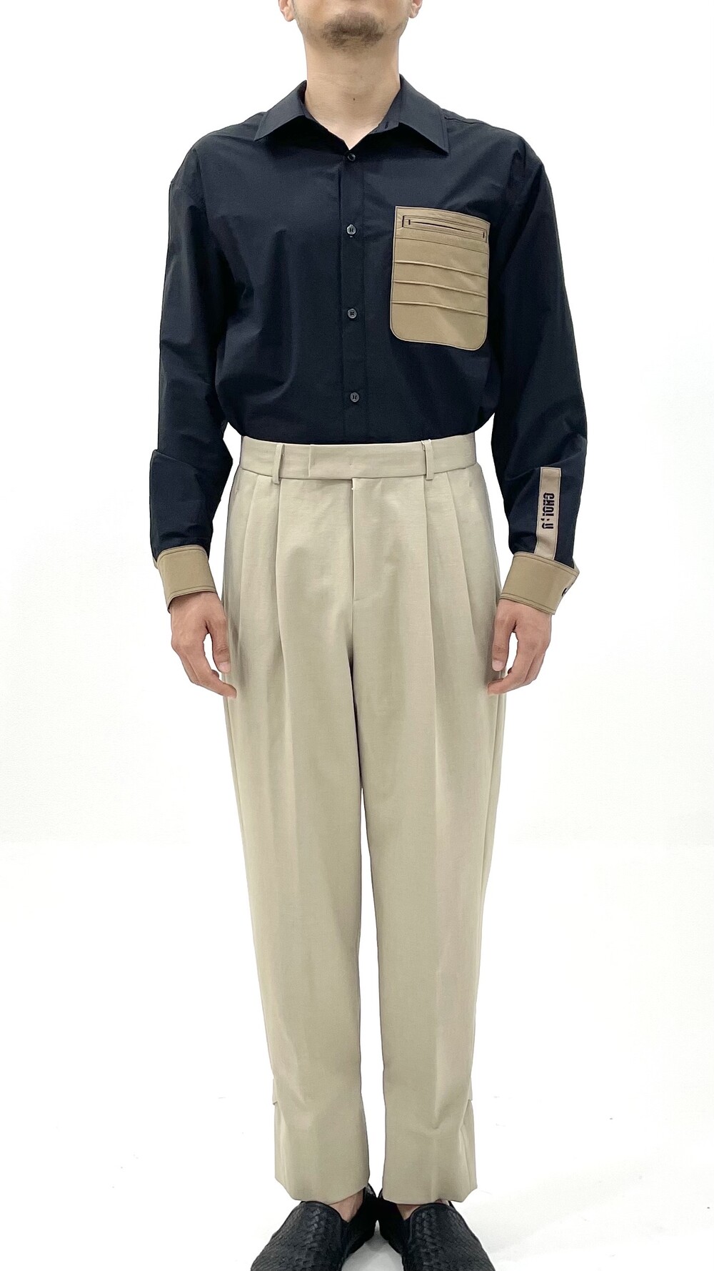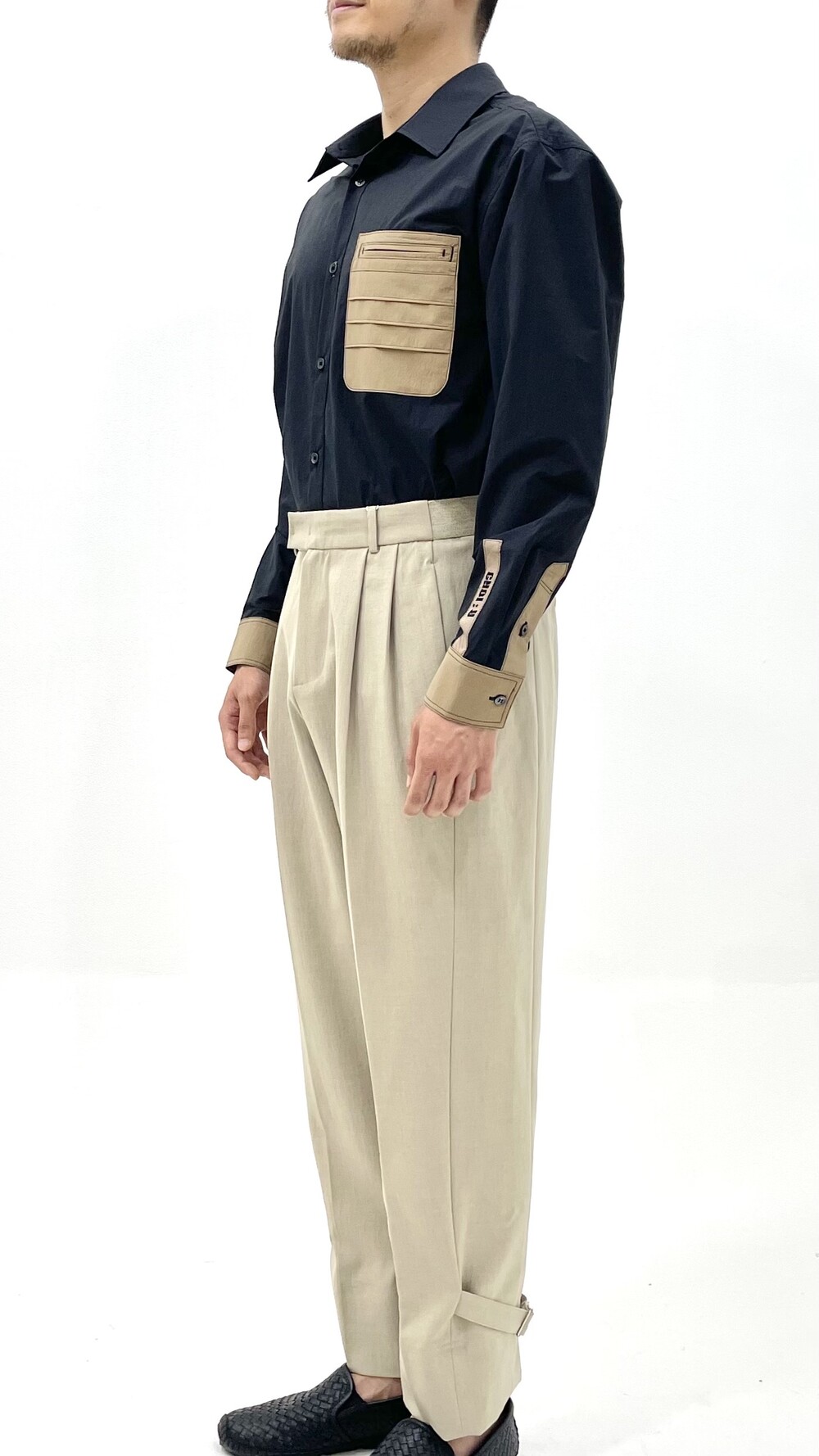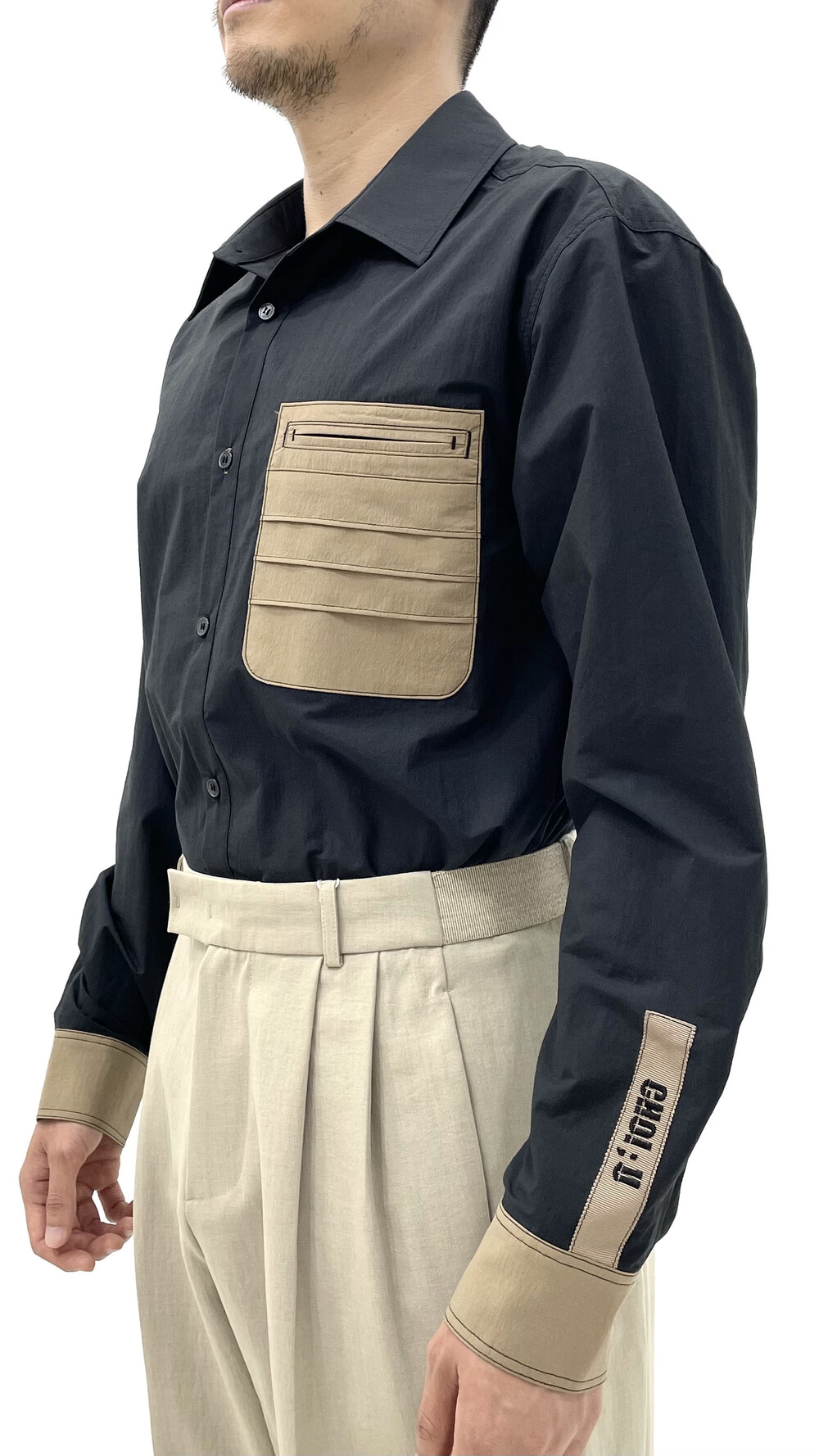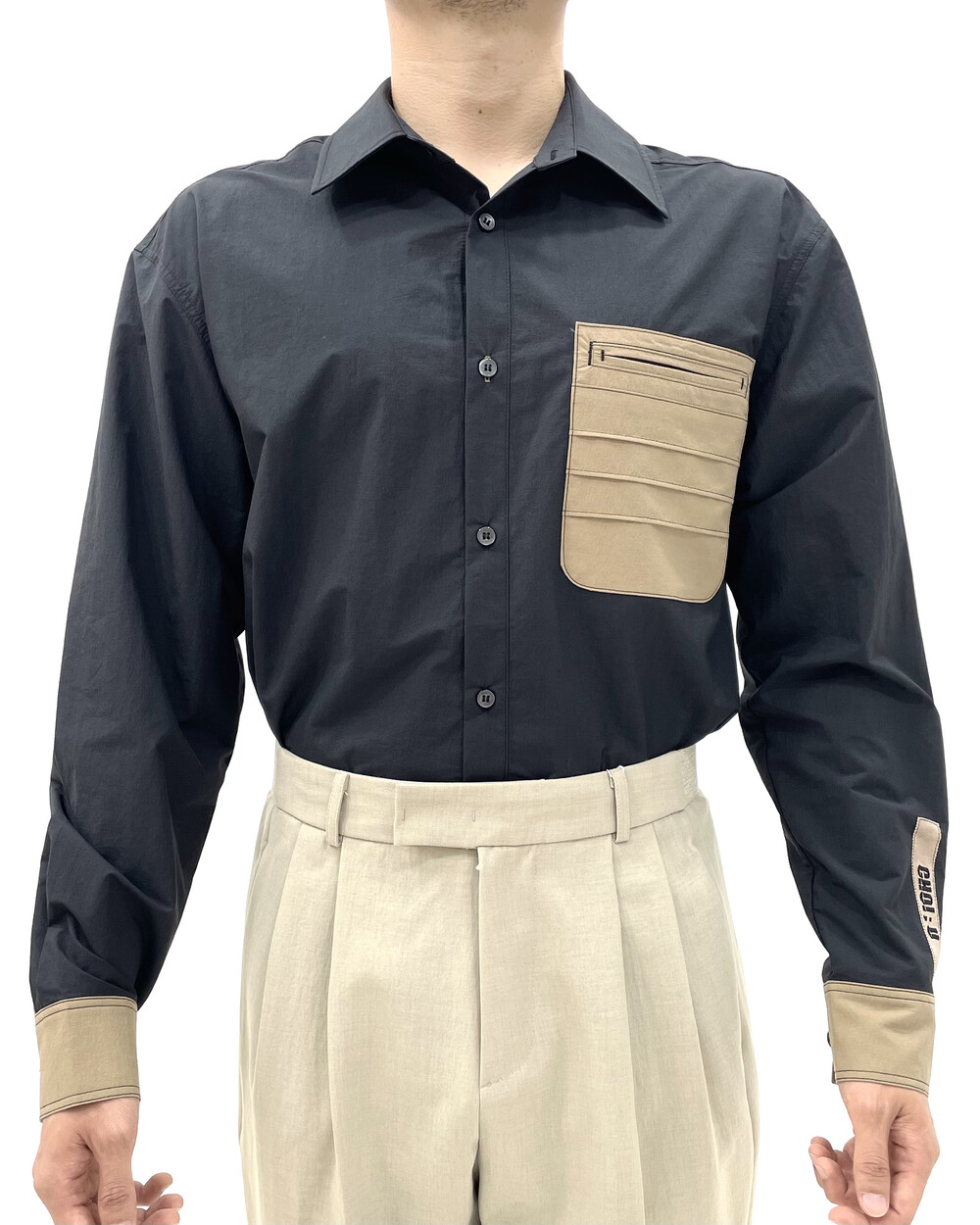 베이직한 핏에 배색 포인트를 준 셔츠입니다.