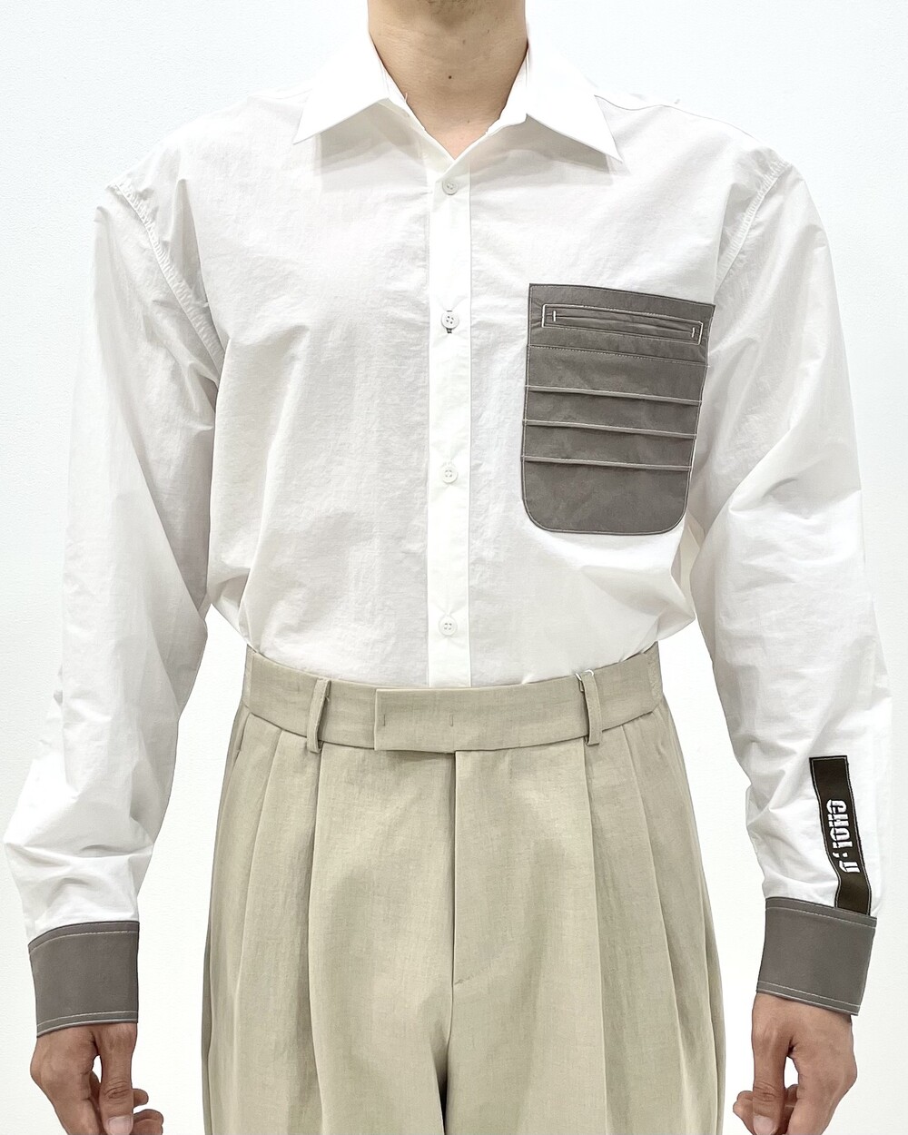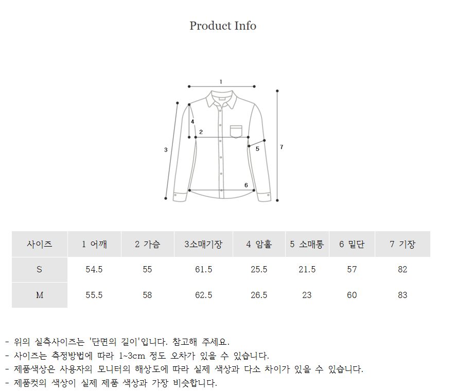 베이직한 핏에 배색 포인트를 준 셔츠입니다.
